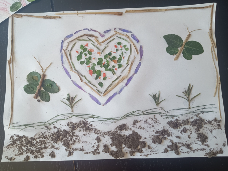 Daarnaast wordt ik ook blij om creatief bezig te zijn en mijn kinderen gelukkig ook! Ik ben afgelopen weken twee keer op school geweest bij mijn dochter om mee te doen aan het DOE‑circuit. Ik kreeg een groepje kinderen uit groep 1/2 waarmee ik iets creatiefs mocht doen. De eerste keer maakten we happy stones en de tweede keer een natuurschilderij. Voor het natuurschilderij zijn we eerst lekker even naar buiten geweest om daarna wat moois te maken van alles wat we hadden gevonden. En omdat er voorbeelden nodig waren, heb ik thuis ook heerlijk met mijn dochter zitten knutselen. Dat soort momenten zijn goud waard