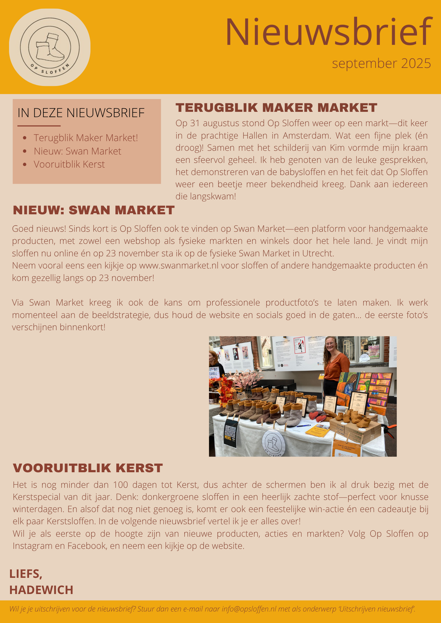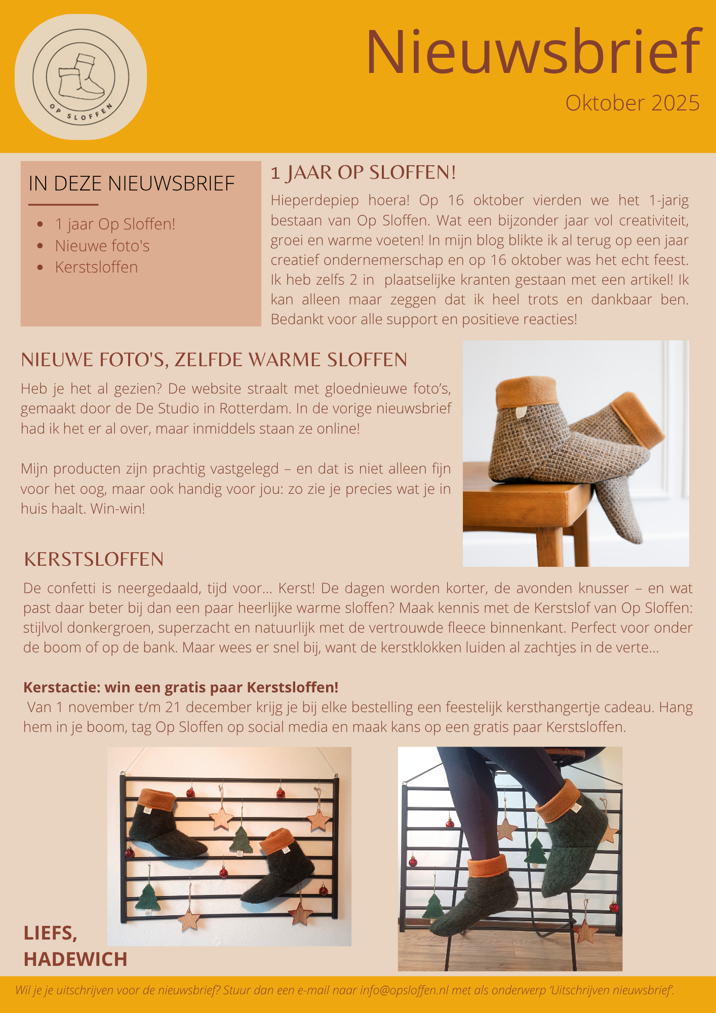 Op 16 oktober is het zover: Op Sloffen bestaat één jaar! Dat betekent ook dat ik mezelf nu officieel één jaar creatief ondernemer mag noemen. Een jaar geleden ging de website live en was mijn bedrijf écht geboren. Daar ging natuurlijk een flinke voorbereiding aan vooraf—ontwerpen, bouwen, plannen, dromen. Maar nu is het tijd om even stil te staan bij wat er allemaal is gebeurd.
