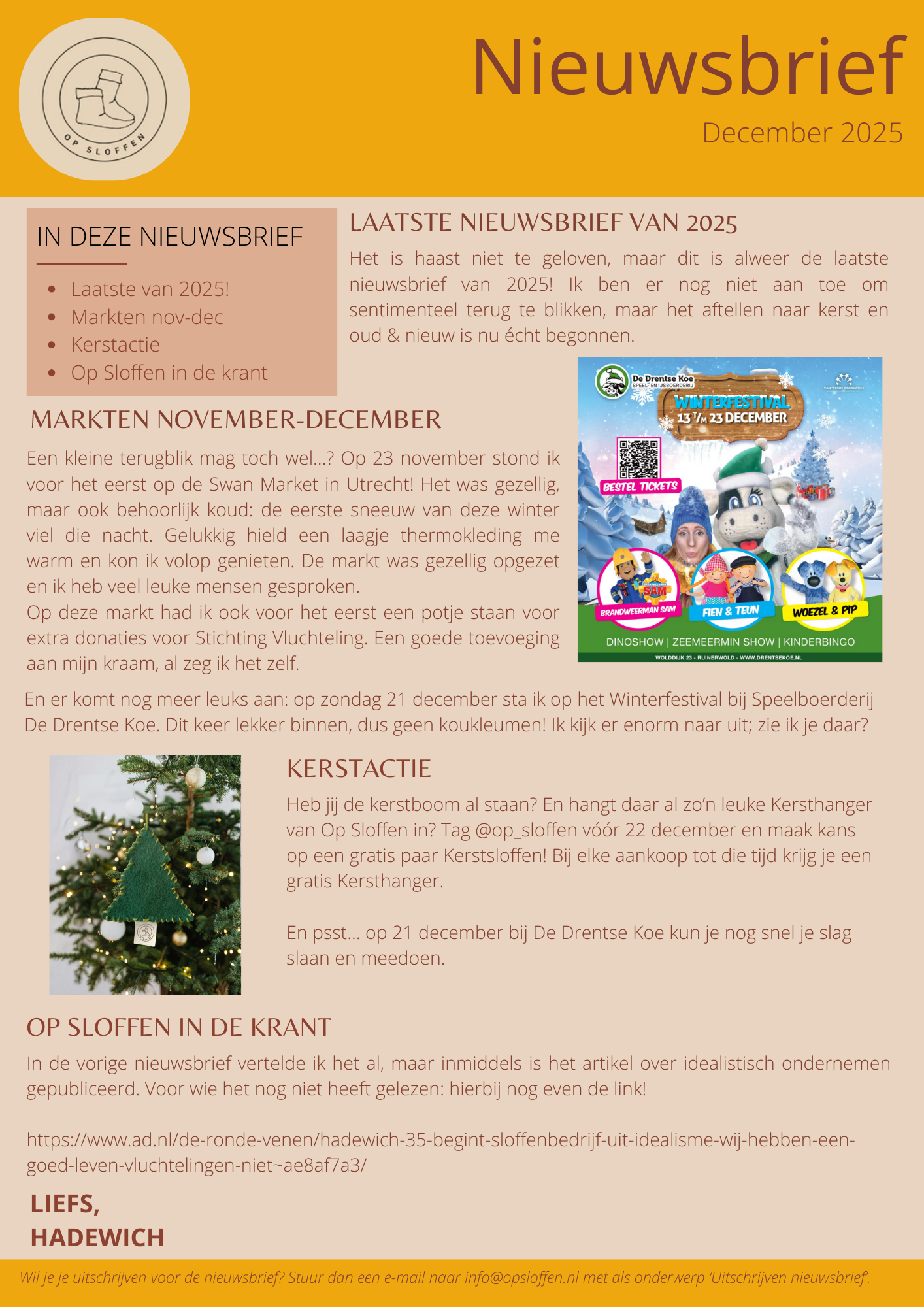 - AD Groene Hart | 25-10-2025 'Hadewich (35) begint sloffenbedrijf uit idealisme: ‘Wij hebben een goed leven, vluchtelingen niet’'