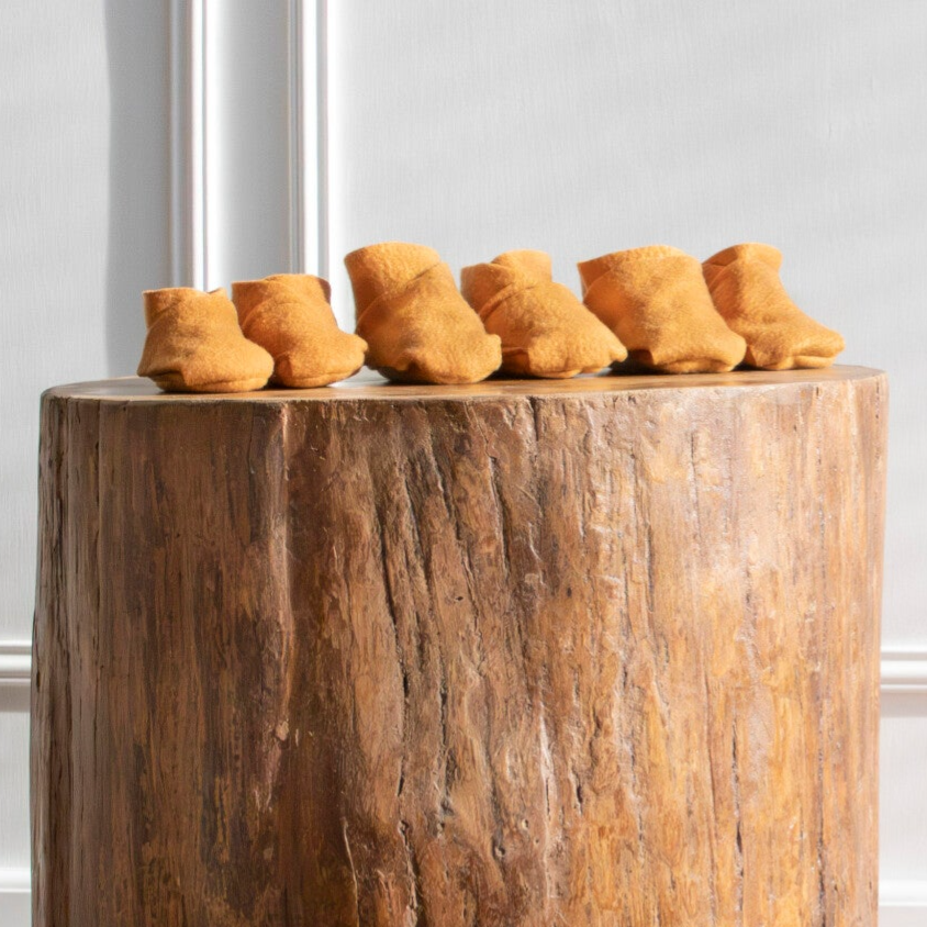 De babyslofjes zijn gemaakt van zachte fleece. Dankzij de handige klittenbandsluiting trek je ze moeiteloos aan en blijven ze goed zitten. Zet het voetjes in de slof en vouw de slof er gemakkelijk overheen. Ze gaan makkelijk aan en niet snel uit. De slofjes zijn verkrijgbaar in 3 maten; van newborn tot ongeveer anderhalf jaar oud.